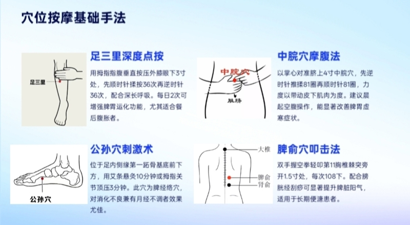 每晚用温水泡脚 15-20 分钟,配合按摩足底穴位,既能疏通经络,又能调整脏腑功能,帮助脾胃更好地运转。