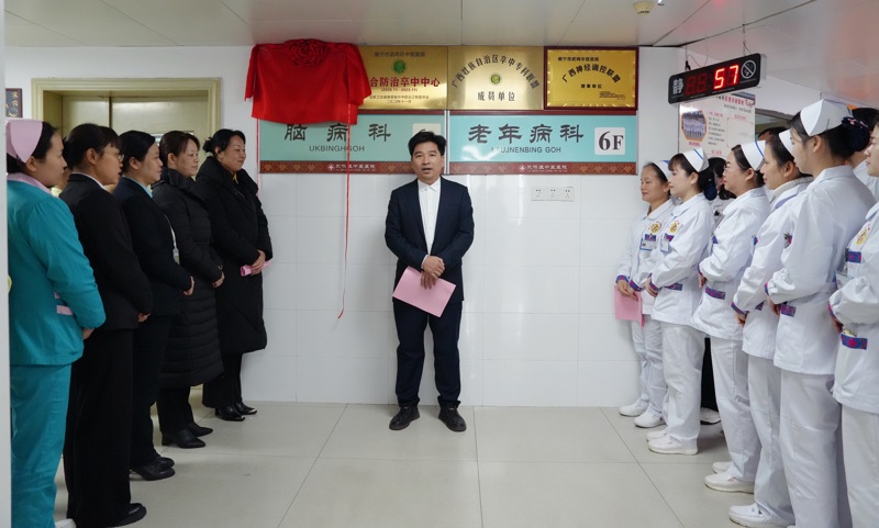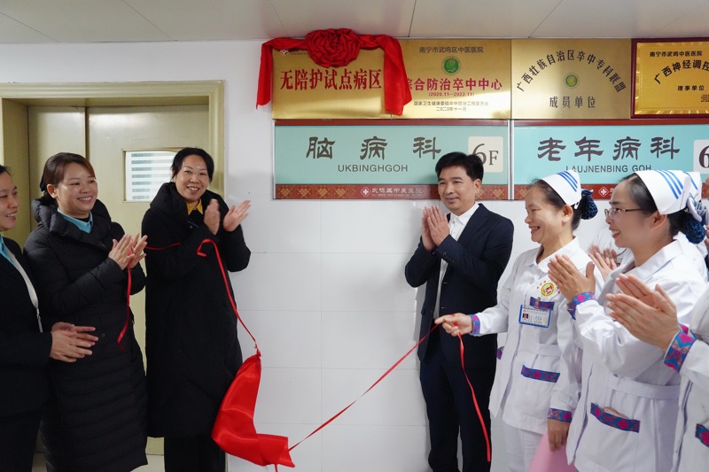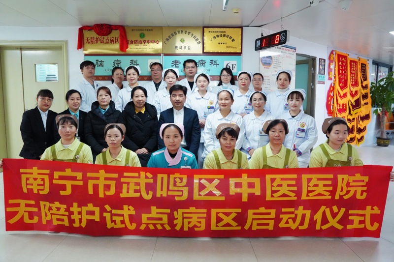 2026年1月22日上午,南宁市武鸣区中医医院首批“无陪护”试点病区揭牌仪式分别在脑病科、康复科、骨伤科一病区、骨伤科二病区举行。我院院长潘文斌、相关职能科室负责人、医护代表及合作单位代表出席活动。