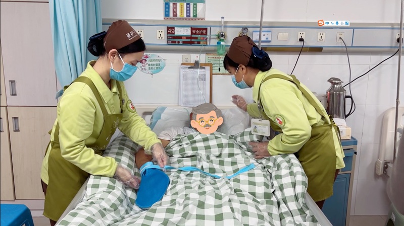 “无陪护”服务并非无人陪护,而是在患者或家属同意且自愿选择的基础上,由医院通过合作引入经规范化培训、持证上岗的专业护理员,提供全程生活照护服务,真正实现“入院有人帮、住院有人护、检查有人陪”。该模式精准契合我院脑病、康复、骨伤等科室行动不便、康复周期较长、生活照护需求突出的患者,让他们获得连续、专业的看护。同时,将家属从繁重的陪护压力中解放出来,并有助于维护病区秩序、降低感染风险,营造更佳的就医环境。