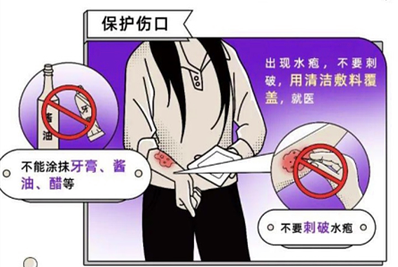 发生烧、烫伤后,切莫慌张,按照烧烫伤急救处理的步骤(冲—脱—泡—盖—送)进行处理,将伤害将至最低。千万不可听信偏方,一定要到正规医院接受治疗。